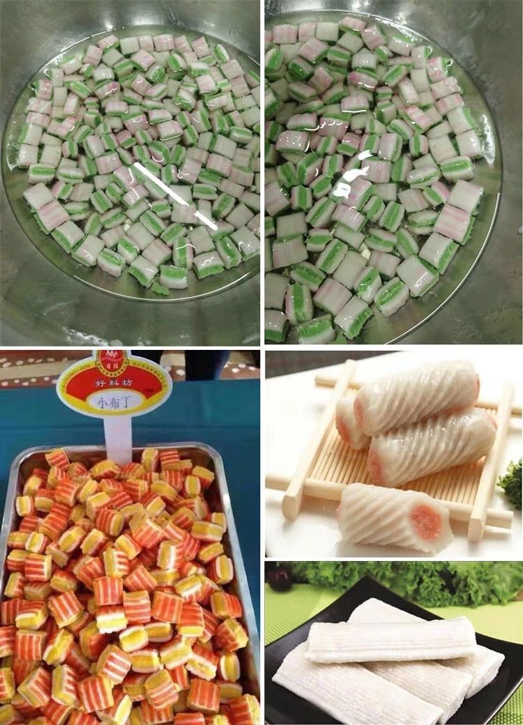 709多功能成型機新一代的多功能淡水丸機為魚肉制品成型設(shè)備,配合泵脯(供料機)使用,能生產(chǎn)出單色、包心及多色各種花式的品種,單色配一臺、兩種顏色配兩臺、三色配三臺。該機采用雙電機雙變頻設(shè)計,不單只是速度可調(diào),而且產(chǎn)品上的條紋旋度也可調(diào),使得做出的產(chǎn)品更多樣化,操作起來更方便。特別配備滾切刀,能生產(chǎn)出平口和圓口的淡水丸,具有一機多用的特點,可做產(chǎn)品:淡水丸、魚排、小布丁、鱈魚卷、蝦卷、蟹卷、烤魚棒、片片脆、鴛鴦片等火鍋料